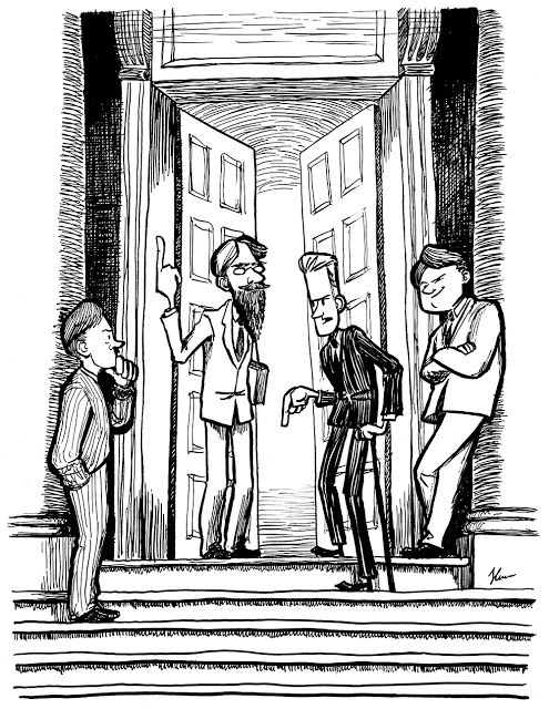 Bölüme girdiğimizde Stephen’ı kütüphane’de üç kişiyle Hamlet ile ilgili teorisini tartışırken buluyoruz. Kütüphanenin müdürü – Quaker mezhebinden- Lyster, bir eleştirmen ve yazar John Eglinton ve önceki bölümlerden tanıdığımız ünlü mistik şair George Russell (AE) . Bir nevi Dublin’in edebiyat otoritelerine kendini kabul ettirme gibi bir şey. İlk kısımlar genellikle Platoncu Russel’ın Aristocu Stephen’a müdahalesiyle geçiyor. Eglinton ara sıra Stephen’a gençliği üzerinden alaycı girdilerde bulunmaya çalışsa da fazla etkili olamıyor. Hamlet ve Shakespeare arasındaki bağlantı buralardaki ana tema