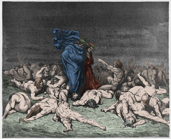Aslında gerek buradaki gerekse bir önceki çemberde bulunan günahkarlar, bu suçu tek işleyenler değil. Yani obur olanlar arasından burada değil de daha sonra ziyaret edeceğimiz Arafta ya da cennette olanlar da varmış. Ama burada olanların asıl problemi günahlarından pişmanlık duyup zamanında tövbe etmemeleri/ya da edememeleri. Geçen çemberdeki iki aşık da bir papaza günah çıkartamadan öldürüldükleri için sonsuza dek o fırtınada dönmeye mahkum olacaklar. Göreceli yani aslında her şey.